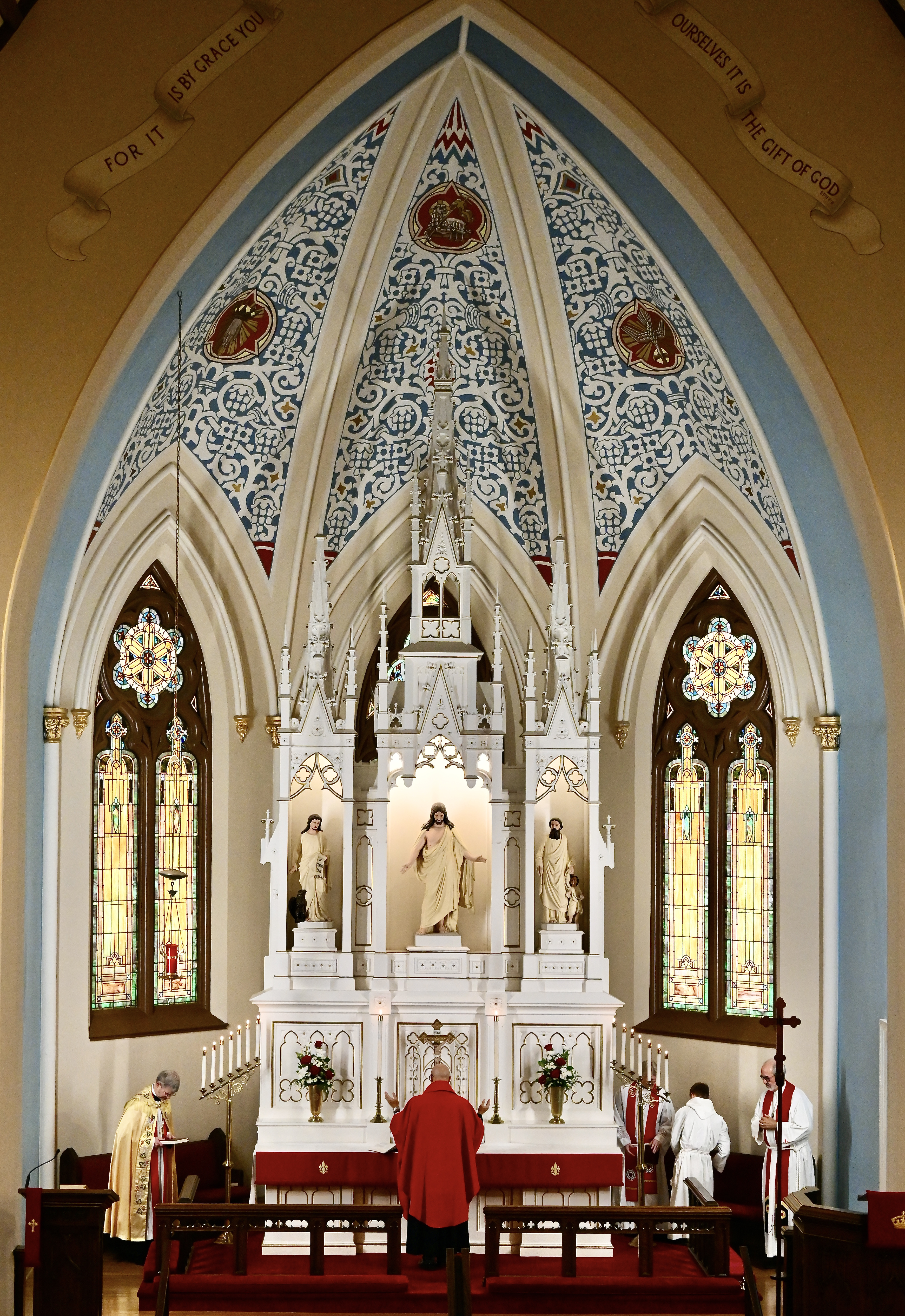 All Divine Services at St. James are proper Masses, that is, there is always Holy Communion for those members of the Lutheran Church who have been catechized to receive their First Holy Communion and are members of a parish with whom our Synod (LCMS) is in Altar Fellowship. All other persons are welcome to the communion rail for a blessing and further directed to instruction for a faithful reception of the Eucharist.